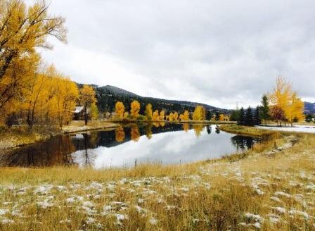 Just a dusting of wet snow makes lakes and fall colors look even more beautiful. This picture was recently taken o